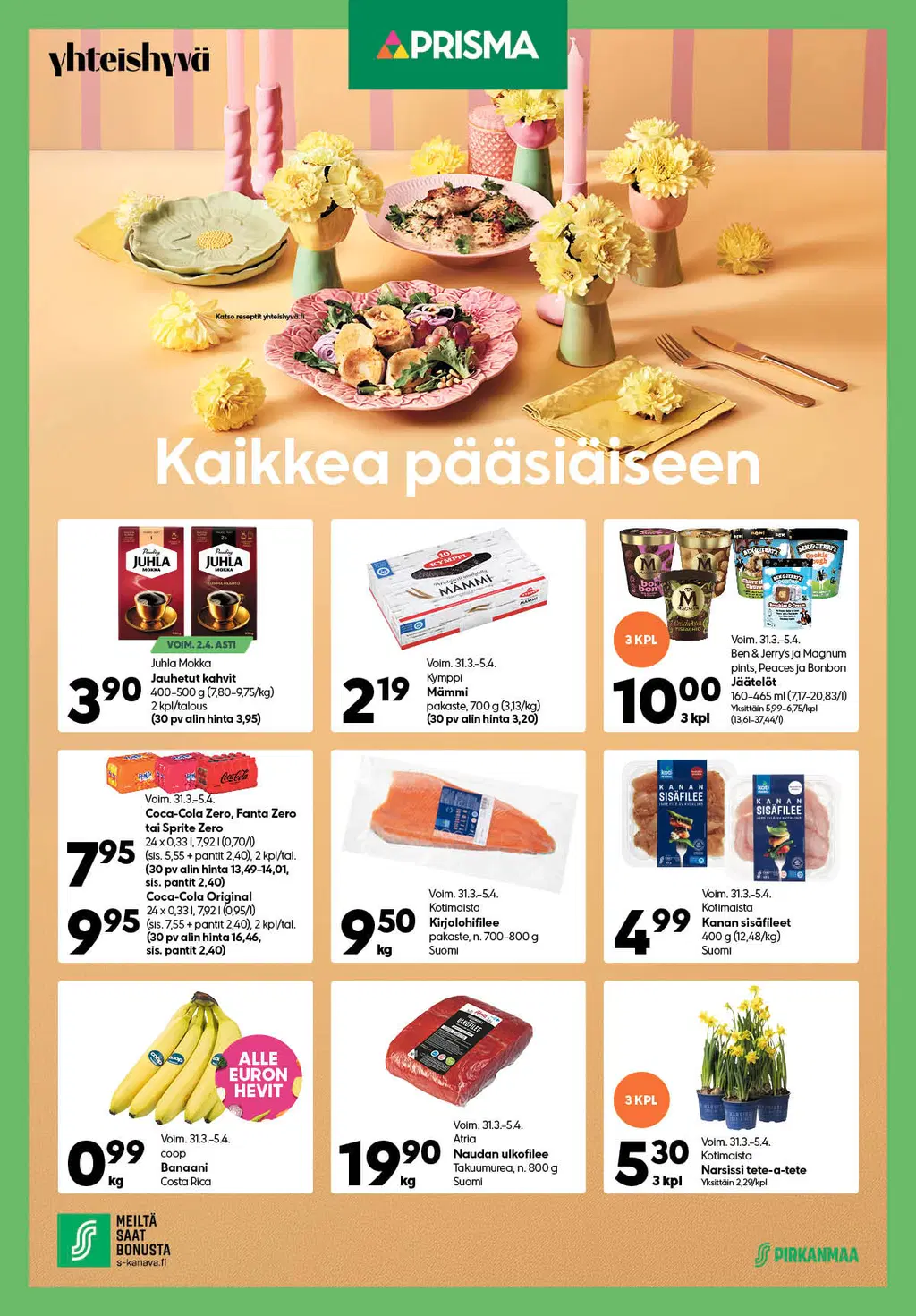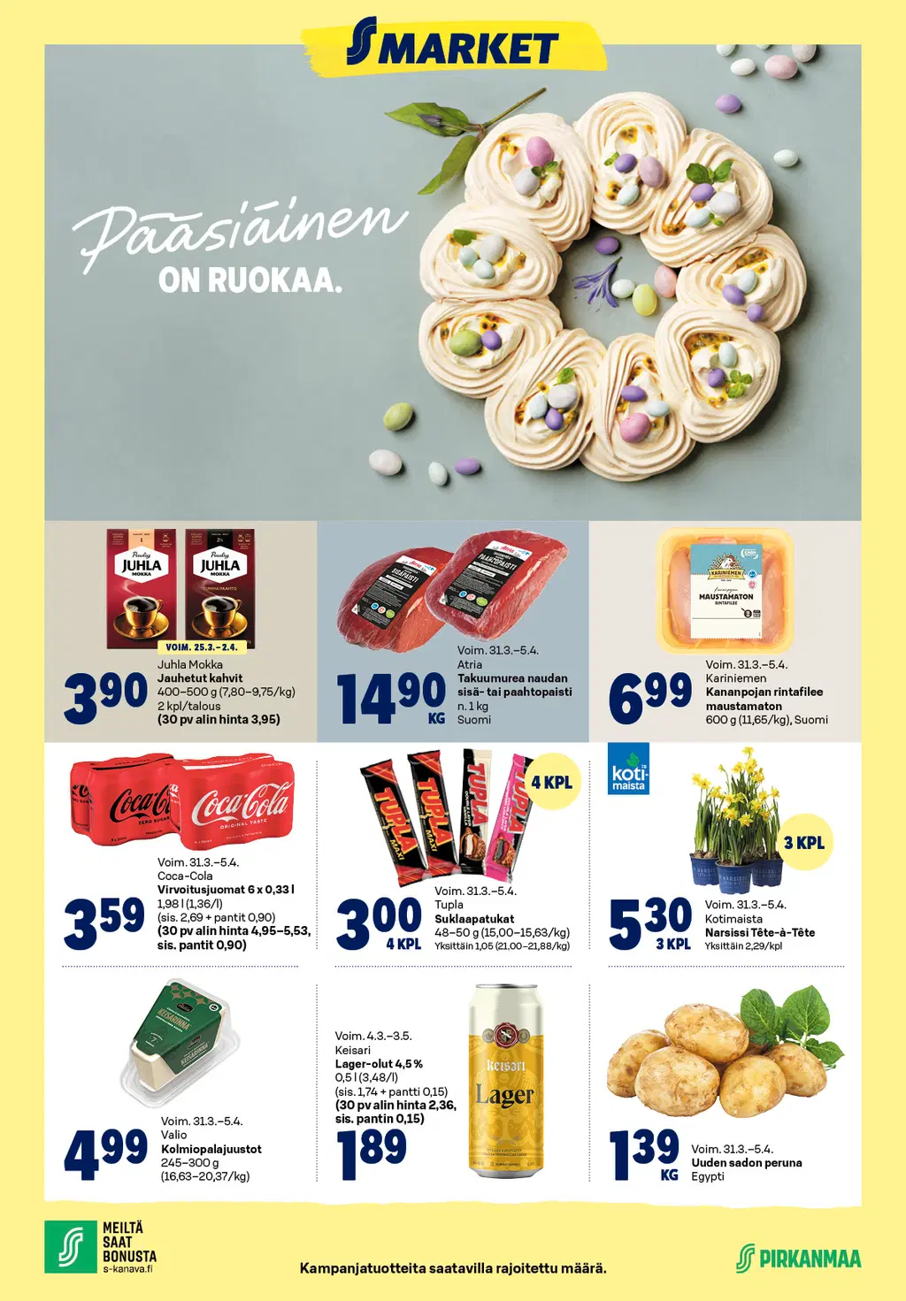 Prisman pääsiäisviikon edut (huom! voimassaolo vaihtelee) S-marketista pääsiäisviikolla (huom! voimassaolo vaihtelee)