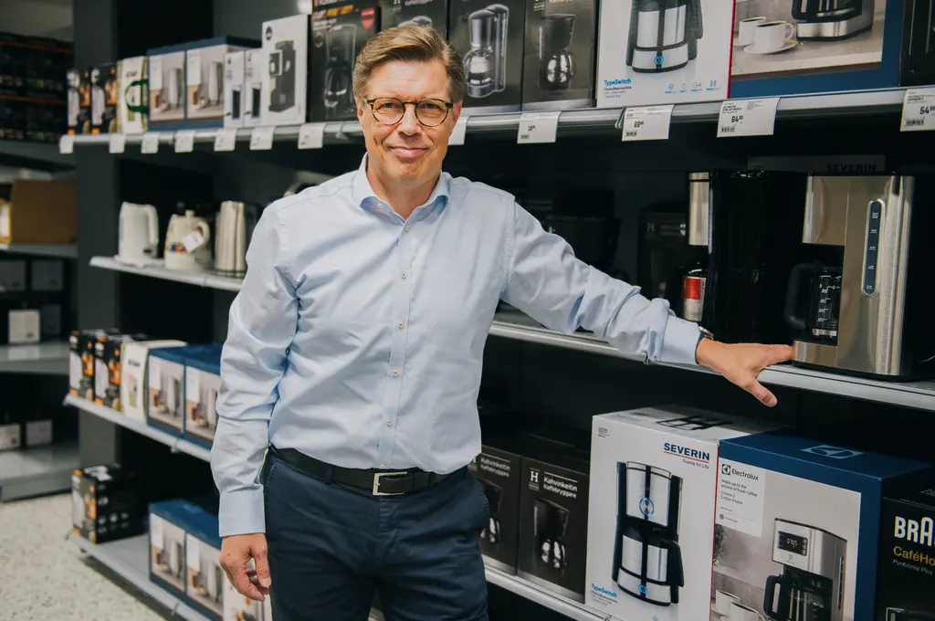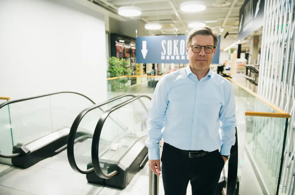 Keskustan asiakkaat toivoivat ”city-Prismaan” muun muassa keittiötarvikkeita ja pienkodinkoneita. Kuva: Karri HarjuKuuluisa lattia ja kinkkiset liukuportaatLoppuvuonna 2021 alkanut talon kokonaisuudistus on ulottunut jokaiseen kerrokseen. Niin sanotun tavaratalon puolen palvelut eli Sokoksen uusitut muodin, kauneuden ja sisustamisen osastot, ravintolat ja kukkakauppa sekä postipalvelut ja S-Pankki sijaitsevat nykyisin kerroksissa 1–4.Kommelluksiltakaan ei ole vältytty. Ikonisen, liki 50-vuotiaan rakennuksen ikä on nimittäin tuonut projektiin omat lisämausteensa.– Koko kiinteistön uusiminen on ollut haastavaa niin suunnittelun kuin toteutuksenkin osalta. Esimerkiksi uusien, Hämeenkadulta suoraan Prismaan laskeutuvien liukuportaiden rakentaminen ja sovittaminen vanhaan rakennukseen kokonaan uudelle paikalle ei ollut ihan helppo juttu. Vaikka meillä oli monta mutkaa matkan varrella, onneksi kaikki saatiin kuitenkin lopulta ratkaistua, eikä alkuperäisestä suunnitelmasta tarvinnut luopua. Liukuportaista on jo nyt tullut todella paljon positiivista palautetta. Niin, ja toki Sokos Herkusta tuttu kalteva lattia on tuonut remonttiin omat vierivät haasteensa. Varovaisuudella ja tiimityöllä niistäkin on selvitty, Mikko nauraa.